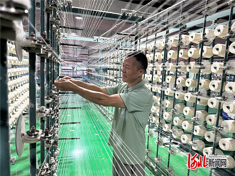 9月16日,河北柏立信家纺股份有限公司生产车间,工人进行纱线整经。河北日报记者 常方圆摄